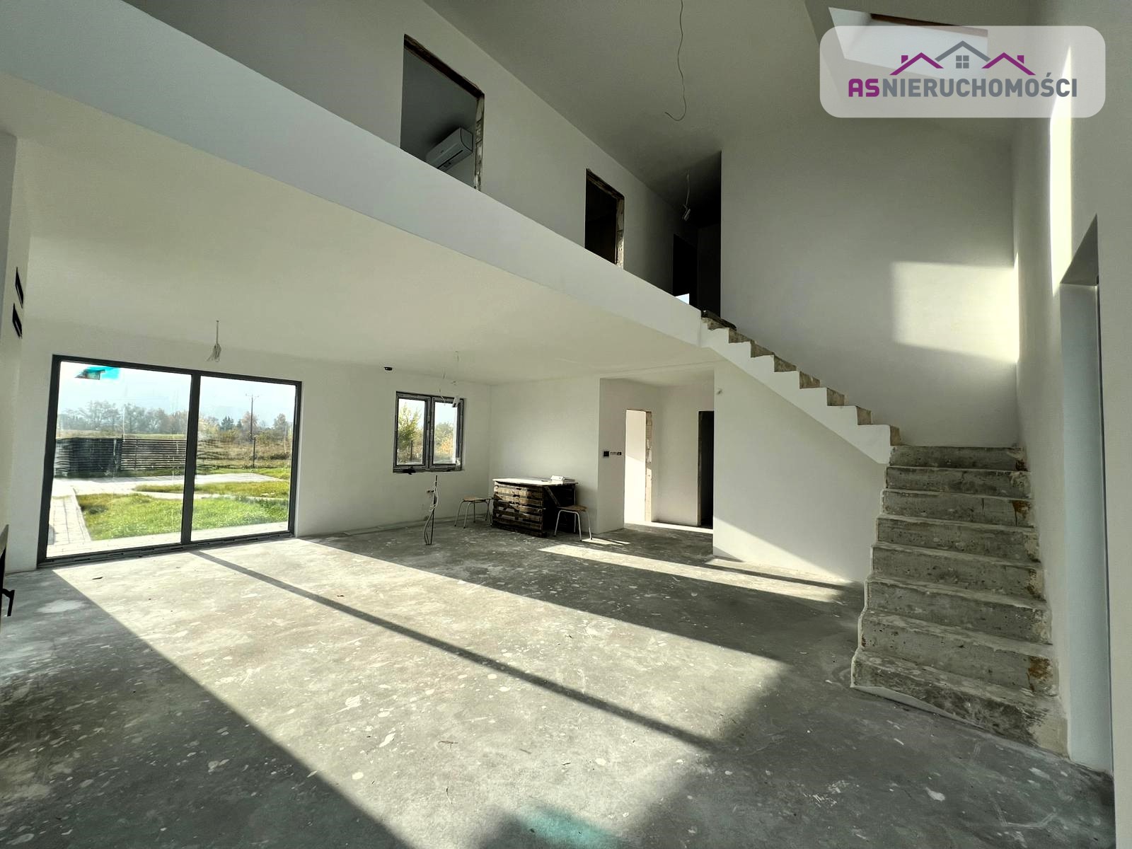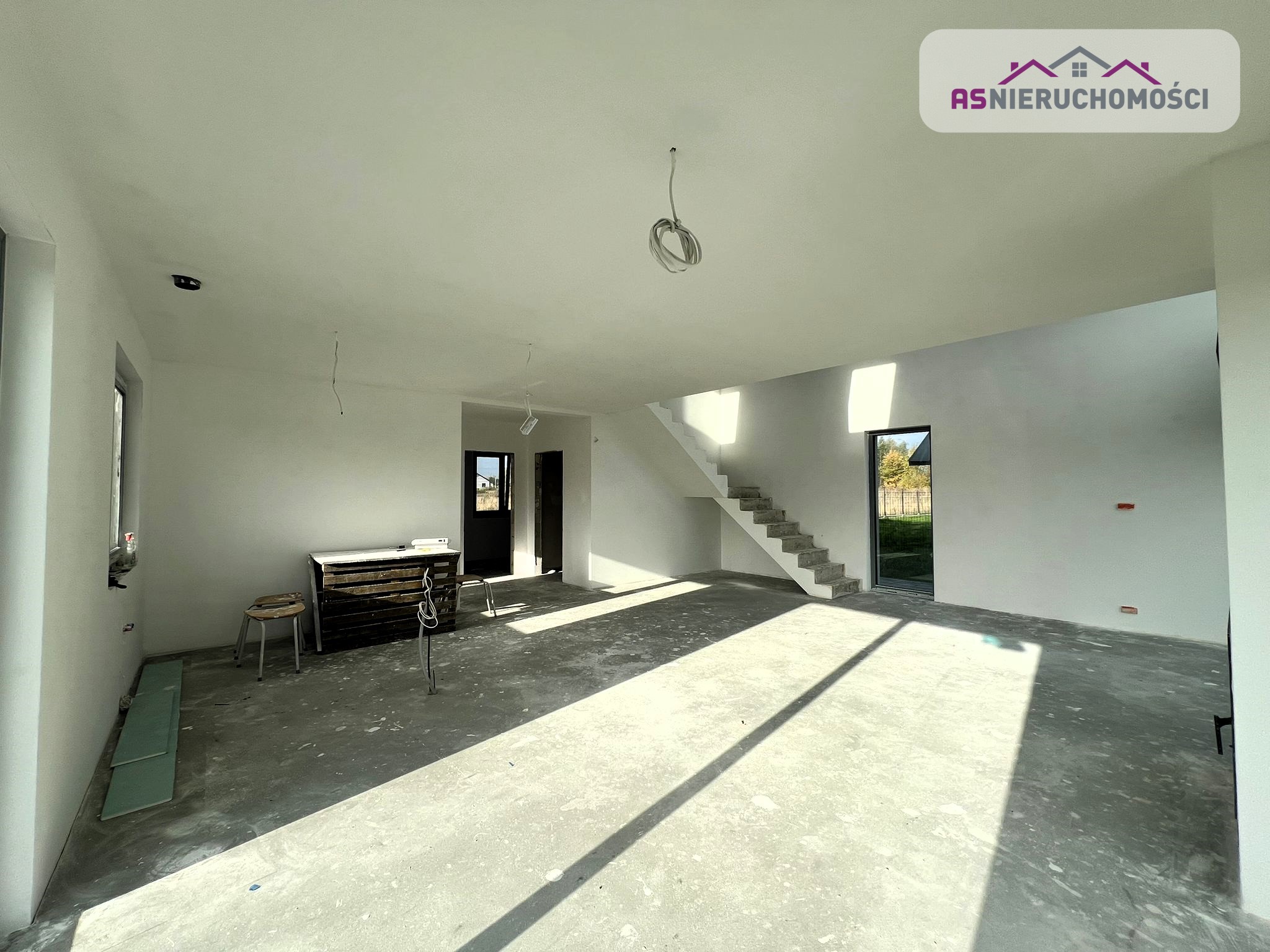 Nieruchomość w stanie deweloperskim. Budynek ocieplony styropianem 20cm, dach dwuspadowy kryty dachówką ceramiczną firmy Roben w kolorze antracytowym, rozprowadzona instalacja elektryczna i wodnokanalizacyjna. We wszystkich pomieszczeniach ogrzewanie podłogowe, wykonane tynki na ścianach.
